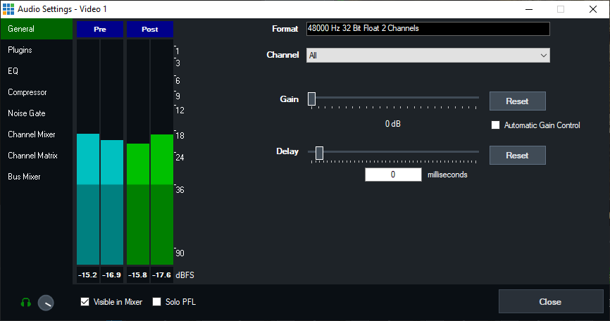 The channel mixer can be used to set the volume level of individual channels.